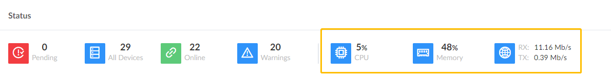 Check the performance of CPU, memory, and TX/RX network speed.