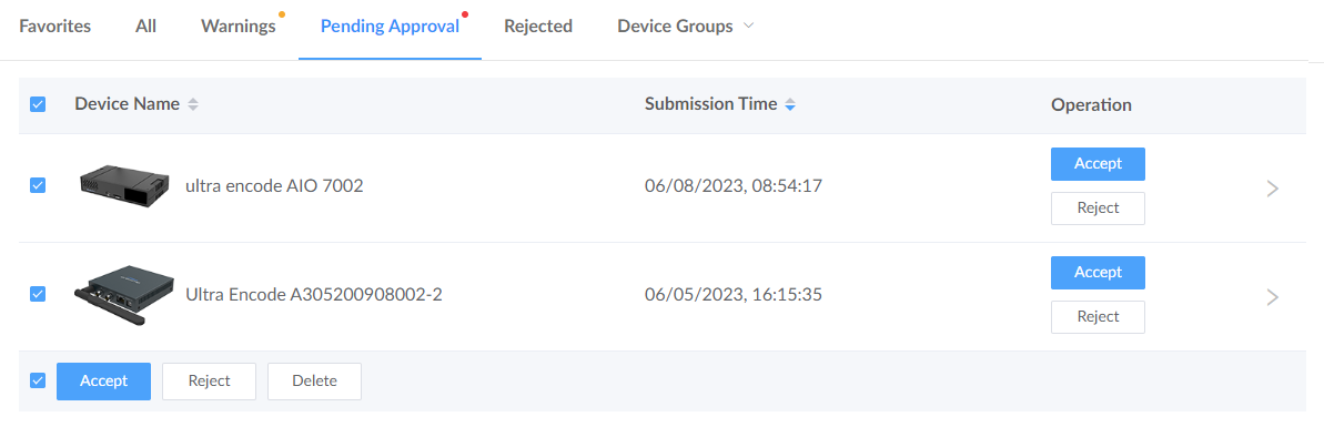 - Enter the Devices page from Control Hub left navigation pane and go to the Pending Approval tab.