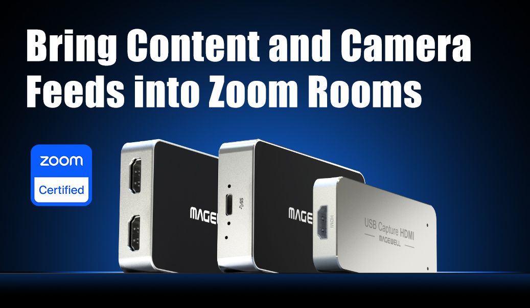 Magewell Pro Convert IP to USB, USB Capture HDMI and USB Capture HDMI Plus models are certified by Zoom to bring camera feeds and content into Zoom Rooms.