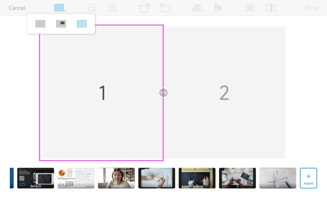 For the picture-in-picture layout, the small picture is placed in the lower left corner of the canvas by default. You can drag the small picture to move it anywhere within the canvas. For the side-by-side layout, the scene is by default evenly divided into two frames. You can drag the dividing line button to the left or right to change the ratio of the two sources. Note that a source must be at least 1/16 as wide as the canvas.