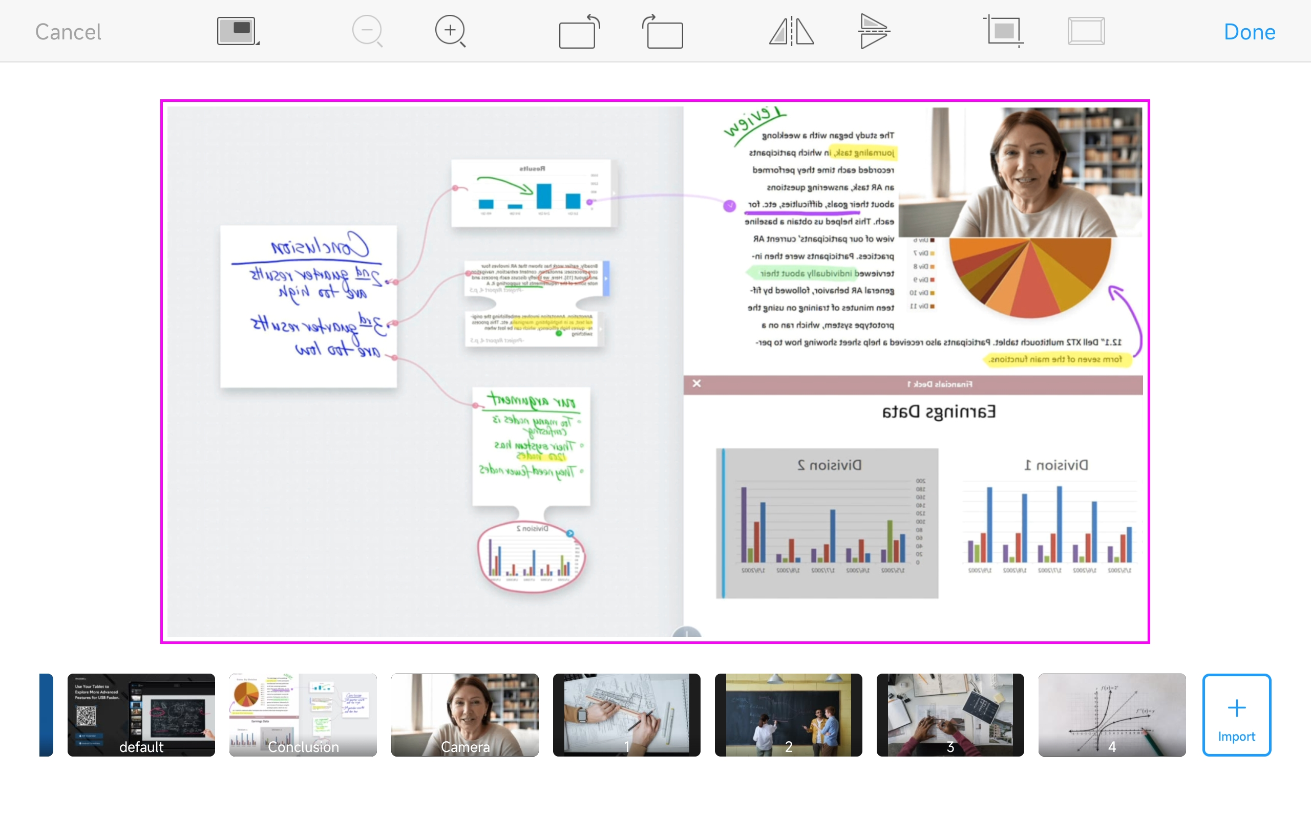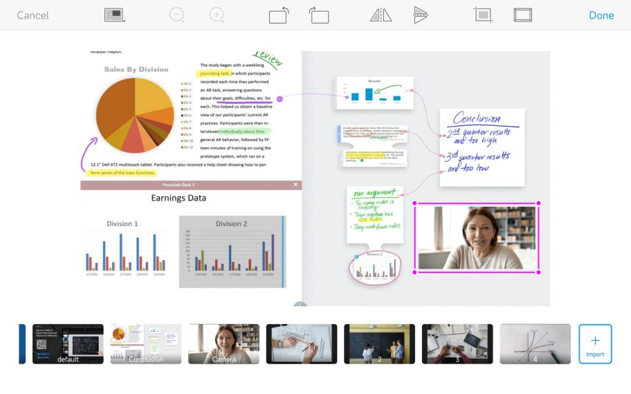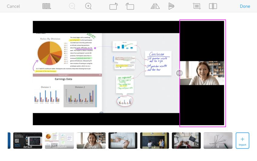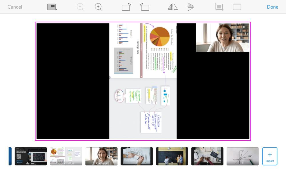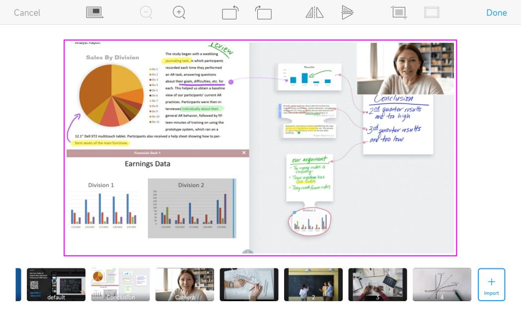 When you want to guide the audience to focus key sections of the on-screen content, you can use scaling tools or gestures to scale the sources.