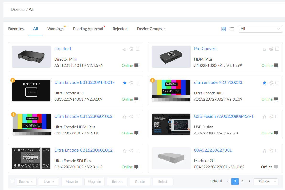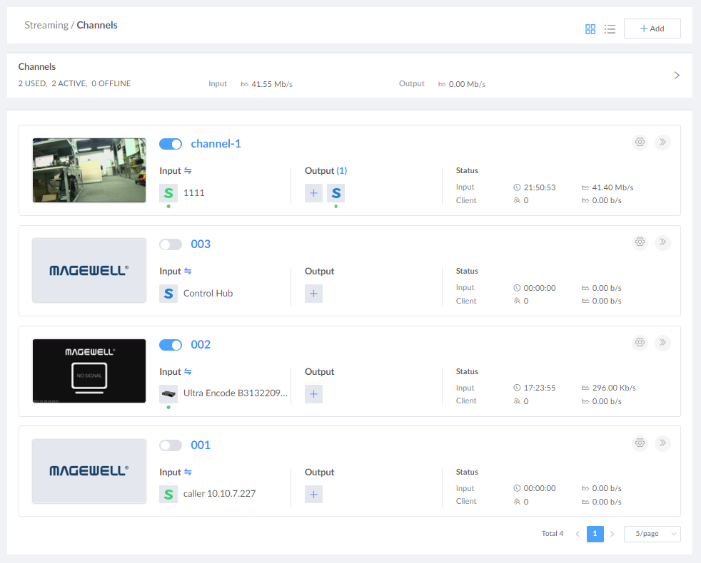 Control Hub platform is designed for 24/7 continuous status monitoring, services configuration, and management for Magewell devices and I/O streams. You can go and see supported Magewell products here.