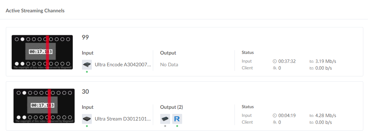 2 active streaming sessions will be shown in the section. You can click on the video window to get a pop-up preview window.