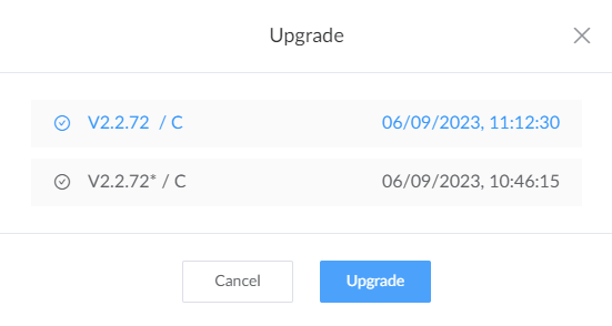1. Choose the target units and click Upgrade.2. Choose the target version and click Upgrade.