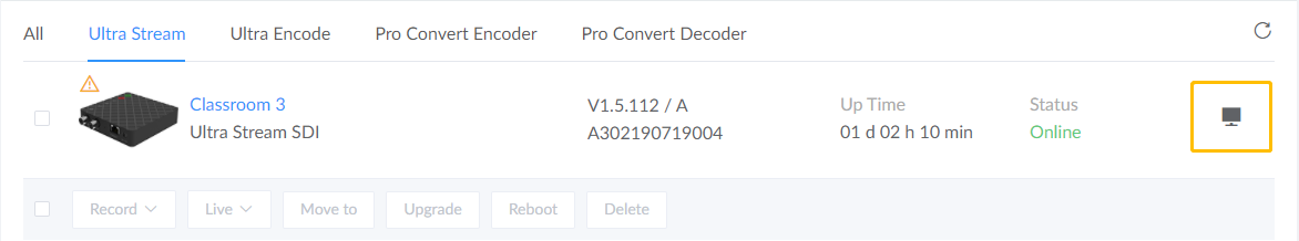 - Enter the All Devices, Warnings or Device Group page from Cloud left navigation pane.