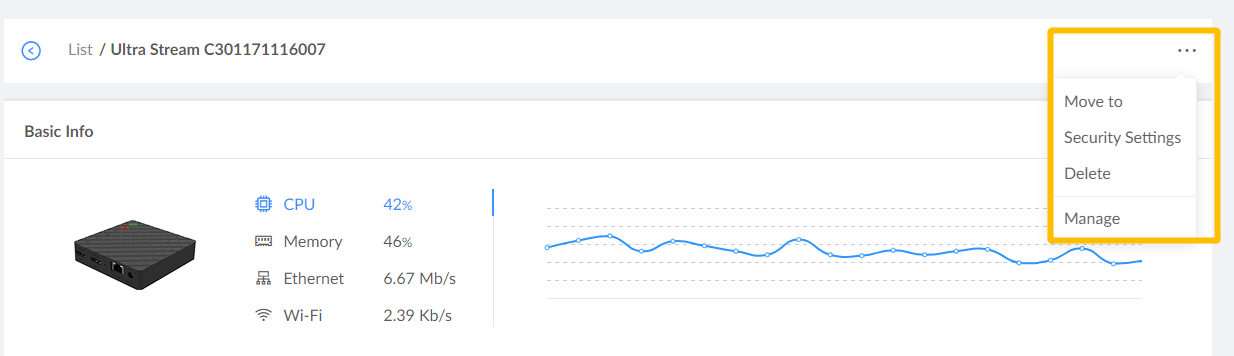 - Click Manage to access device Web UI for detailed configurations. This feature is unavailable when the device is offline from Cloud platform.
