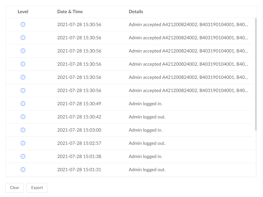 Be cautious that this operation cannot be undone. - Export and save logs as an HTML file by clicking Export for further