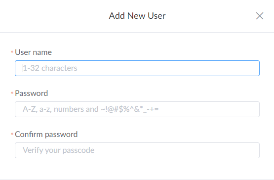 Click + Add New User, and input user name, password, and confirm password, then click OK.