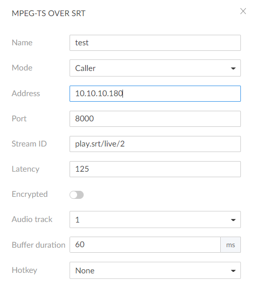 - Port number: range is 1024 to 65535. Default is 8000. The SRT port of