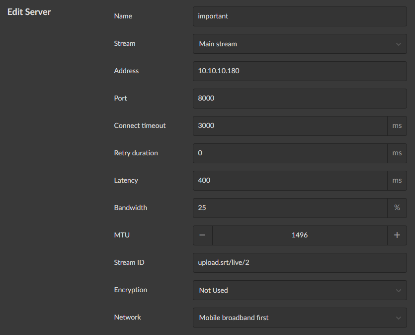 The stream name of SRT pull and push must be the same and unique. The SRT connection will name after the stream name and display on the SRT Relay Server page.