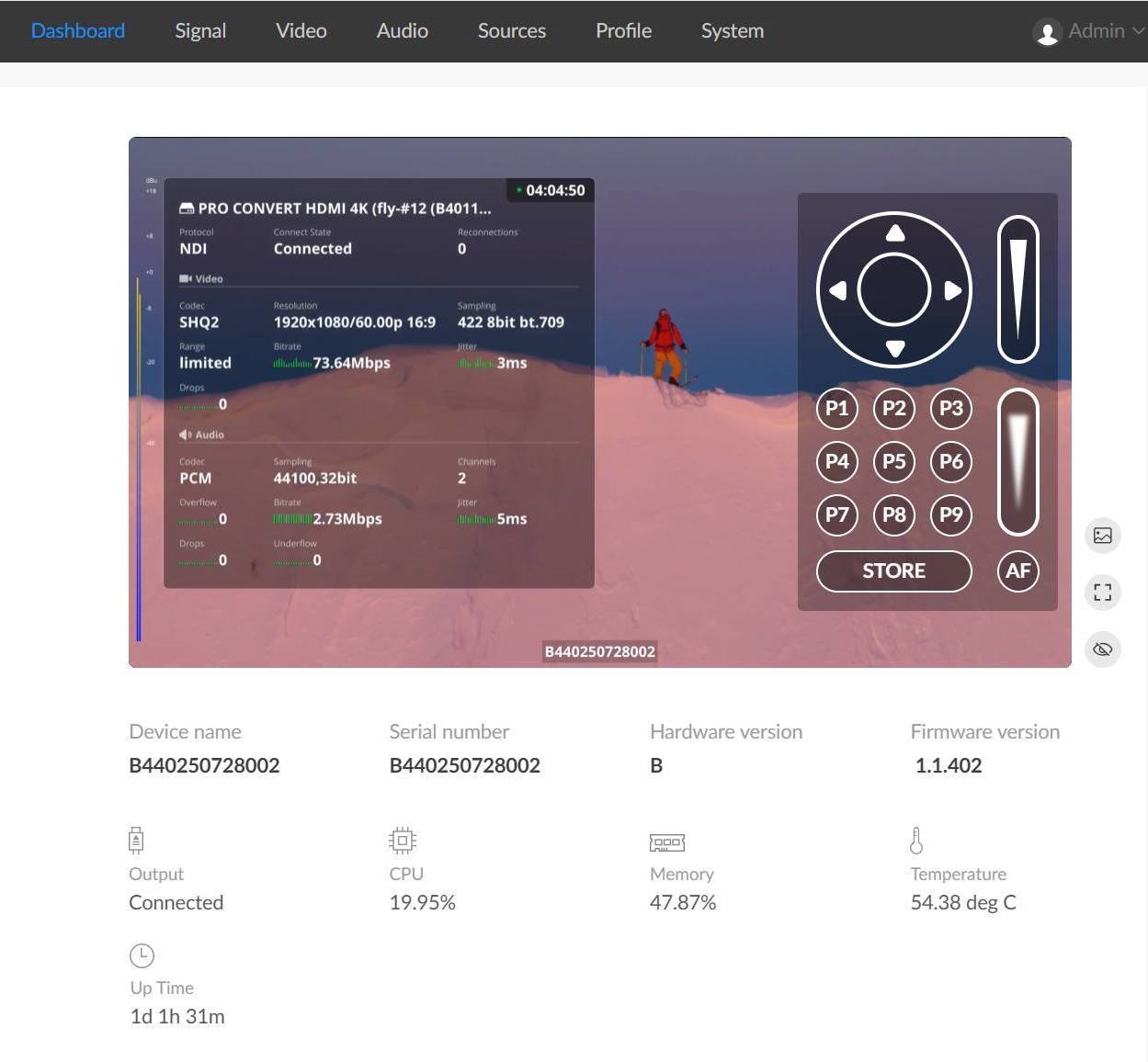 Monitor the real-time operating status of the device in the Dashboard tab.