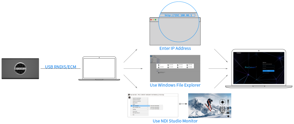 Initial configuration of IP-based devices can often be a challenge, but Pro Convert encoders make it easy. They automatically detect your DHCP-based network and the input signal video format, minimizing or eliminating the need for manual configuration. And in addition to a browser-based GUI interface, flexible control options enable you to manage the devices even before connecting them to your network.